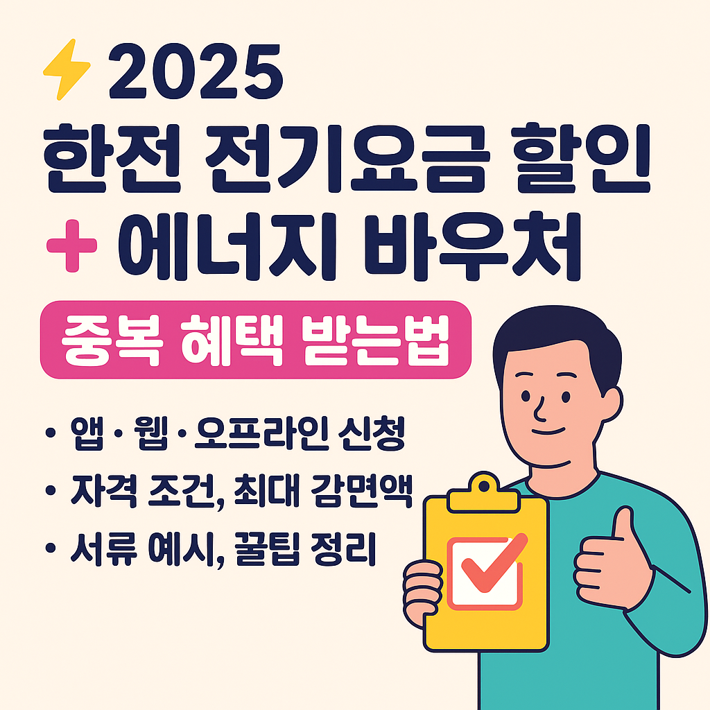전기요금 부담 확 줄이려면? 복지할인 + 에너지바우처를 동시에 신청하세요! 2025년 기준, 한전 전기요금 할인과 에너지 바우처를 동시에 적용받는 꿀팁을 앱, 웹, 오프라인 신청 방법까지 정리해드립니다.