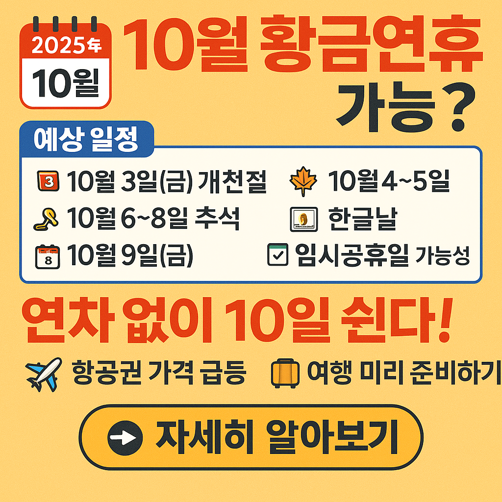 - 📅 10월 10일(금) : 임시공휴일 가능성