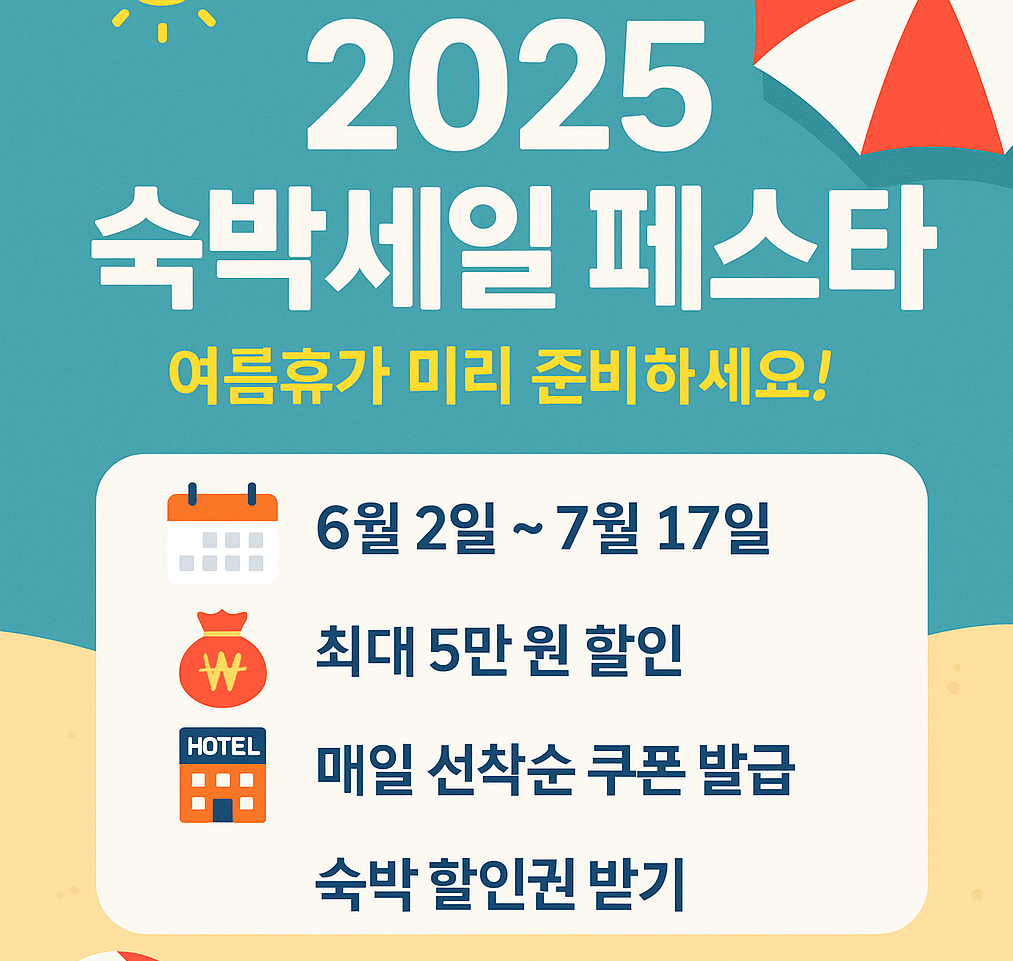 문화체육관광부와 한국관광공사가 주최하는 **2025 대한민국 여름맞이 숙박세일 페스타**가 드디어 시작됩니다. 알찬 할인혜택부터 쿠폰 발급 팁까지 한 번에 정리해드릴게요!