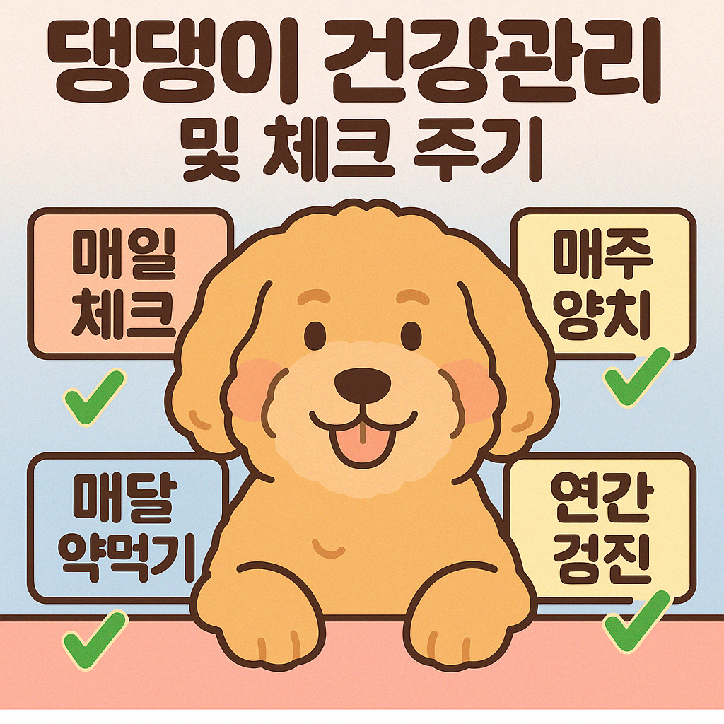 우리 댕댕이, 사랑만큼 중요한 건 '정기적인 건강관리'입니다. 예방접종부터 발톱 손질, 치아·귀 청소까지! 체크 주기를 정해두면 평생 건강하게 함께할 수 있어요.