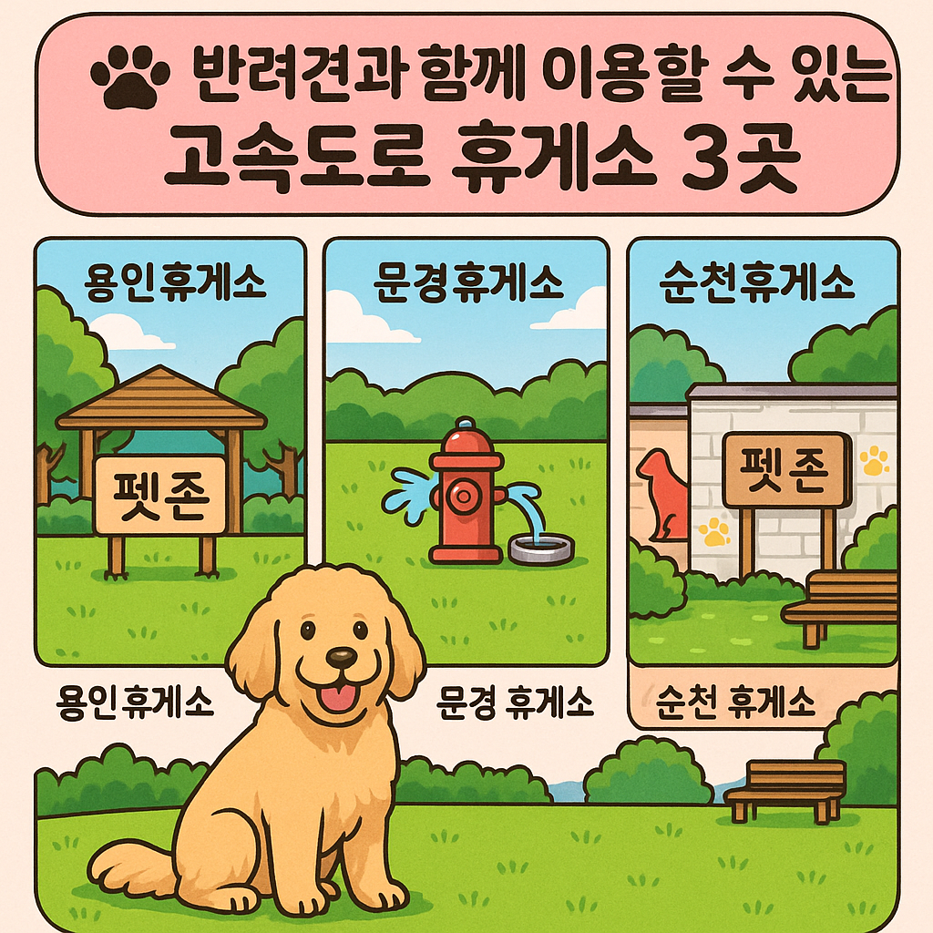 이제는 장거리 여행도 걱정 끝! 반려견과 함께 이용할 수 있는 고속도로 휴게소가 점점 늘고 있습니다. 산책도 하고 쉬어갈 수 있는 전국 주요 휴게소 3곳을 소개합니다.