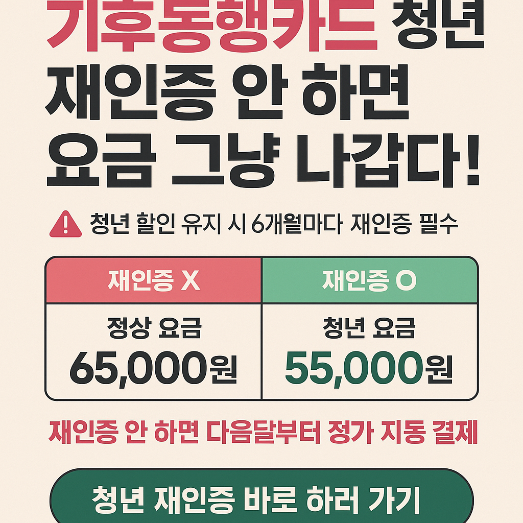 - 메인 화면에서 [청년 할인 재인증] 배너 선택