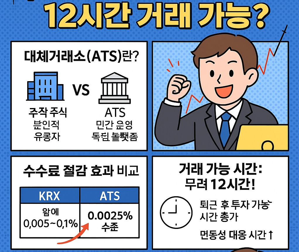KRX(한국거래소)보다 수수료가 절반! 12시간 이상 거래 가능! 지금 투자자들 사이에서 주목받는 ‘대체거래소(ATS)’의 모든 것, 지금부터 정리해드립니다.