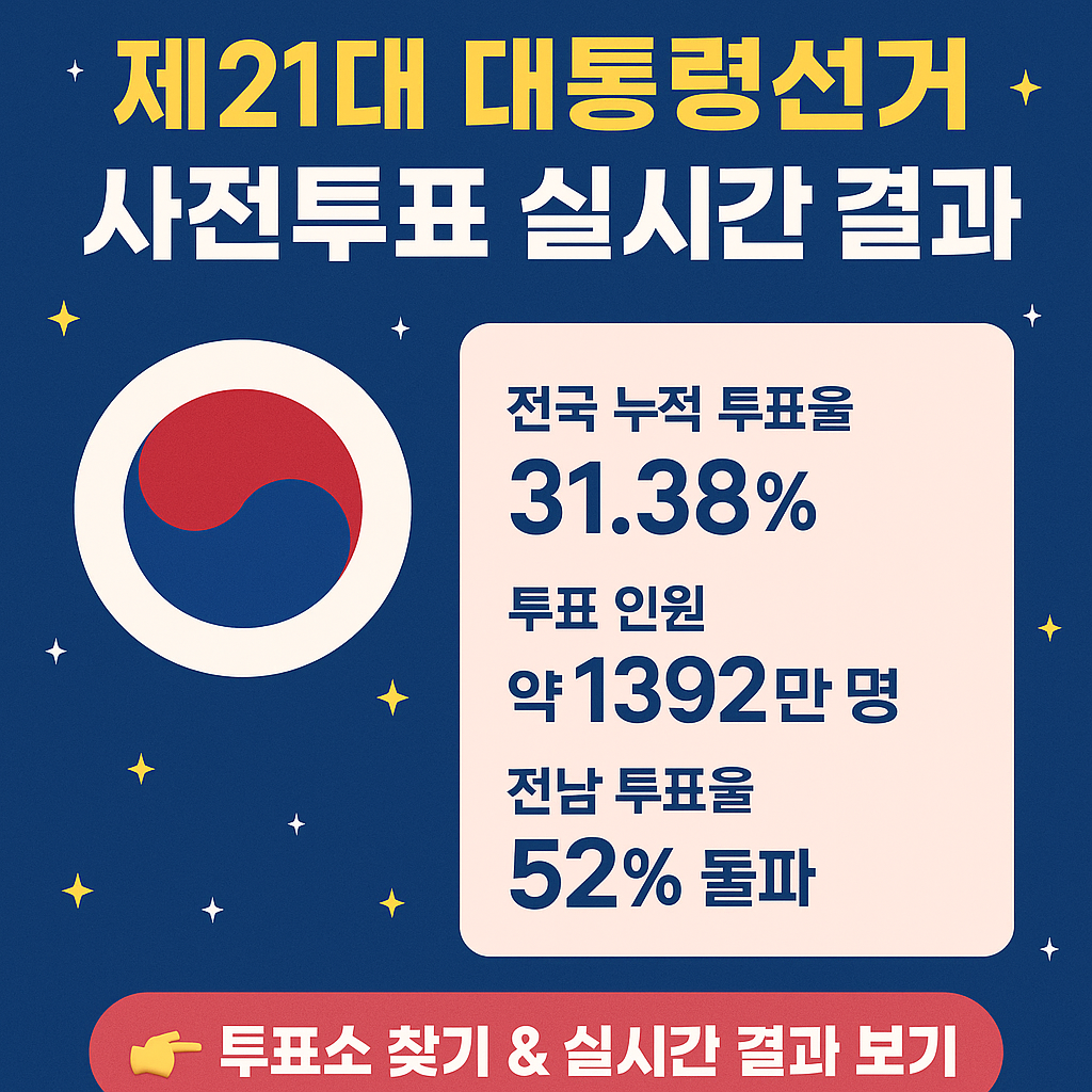 - ✔️ 장소: 전국 사전투표소 (거주지 관계없이 투표 가능)