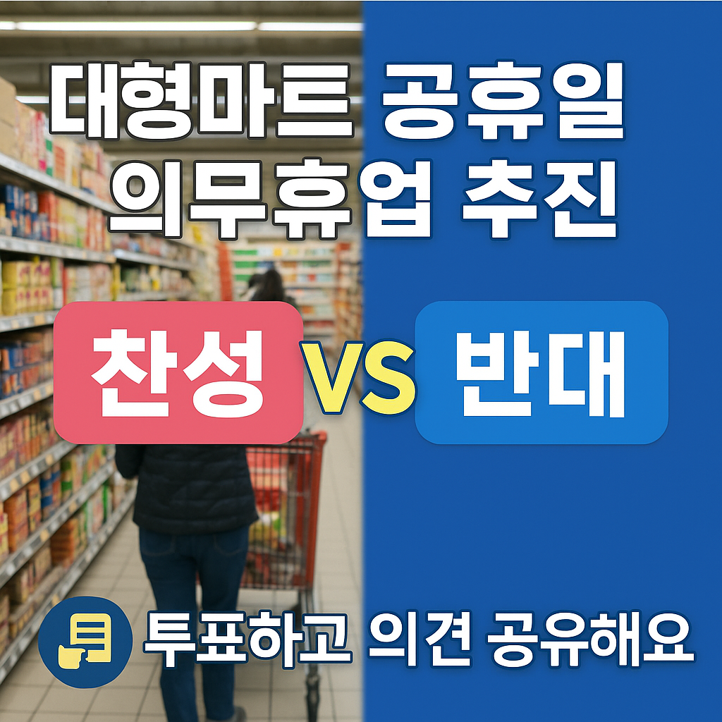 최근 국회에서 **‘공휴일에만 대형마트 의무휴업’** 법안을 추진 중입니다. 이 법이 통과되면 **월 2회** 법정 공휴일에만 휴업하도록 의무화됩니다 .