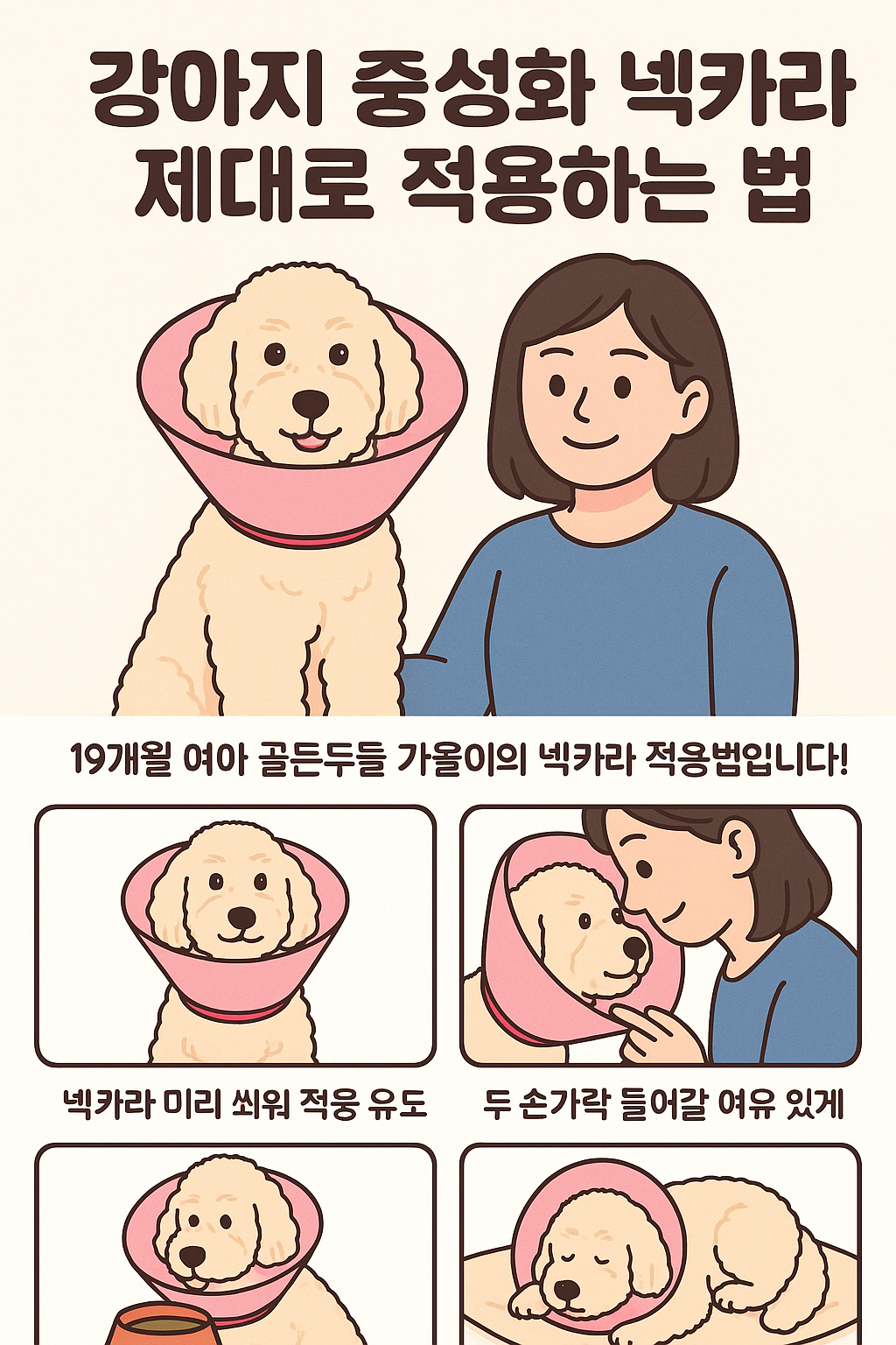 강아지와 보호자 모두를 위한 스트레스 없는 착용법으로 건강하게 수술 회복을 도와주세요.