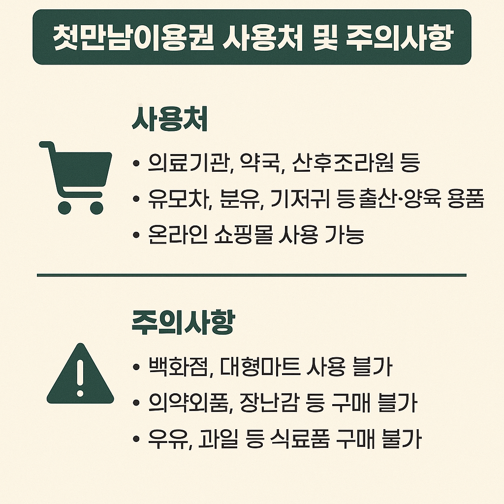 - 사용 가능 품목: 기저귀, 분유, 유아용품, 병원비 등