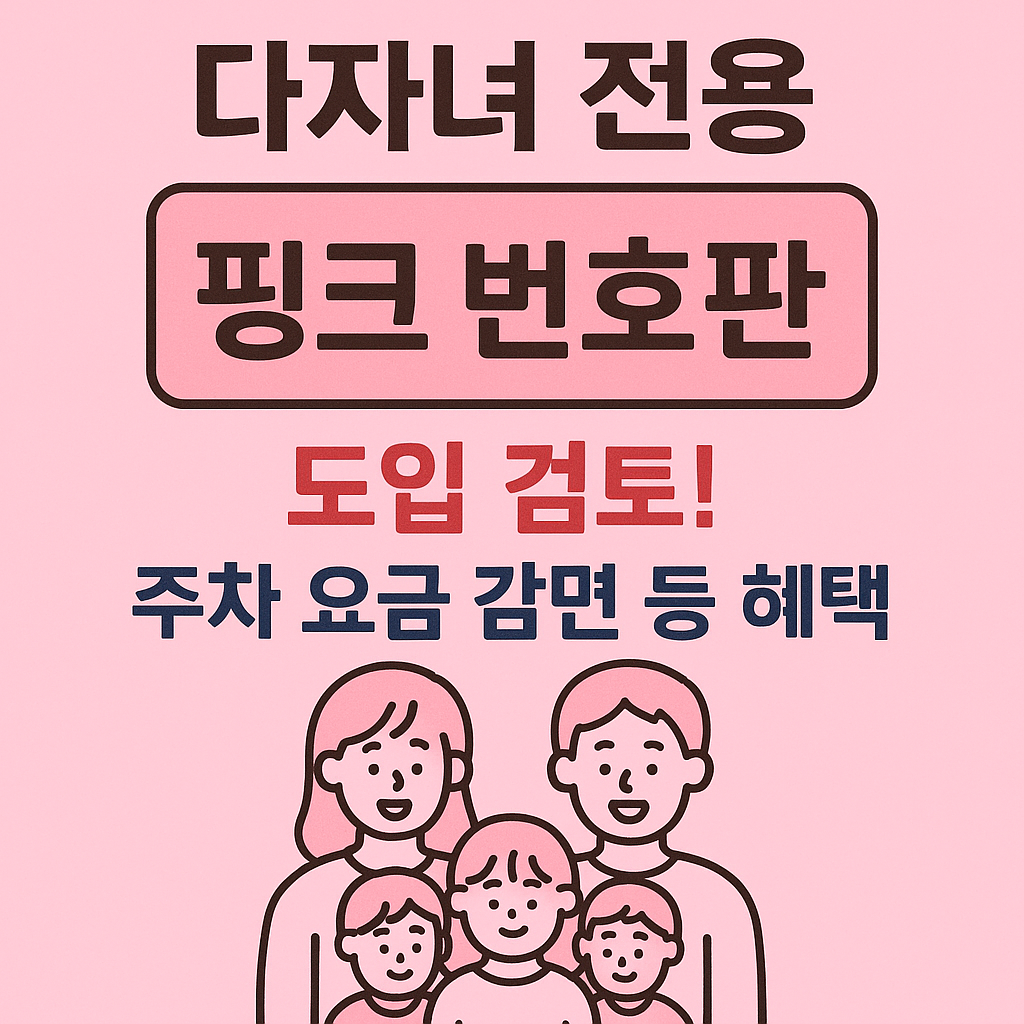 3자녀 이상 가구 차량에 핑크색 번호판을 부착하고, 이동권·주차·통행료 혜택을 주는 정책입니다