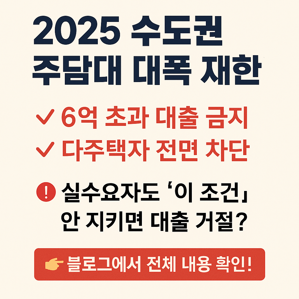 #2025주담대규제 #수도권주담대6억 #다주택자대출금지 #주담대한도 #부동산대출규제 #주담대전망 #갭투자금지 #DSR규제 #LTV규제 #생활안정자금대출 #수도권대출제한 #금융위원회정책 #실수요자대출 #부동산대책2025 #주택담보대출정책