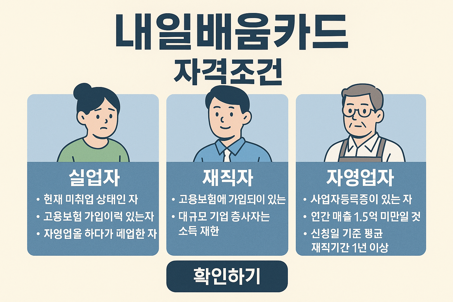 ✅ 내일배움카드는 고용노동부가 지원하는 직업능력개발 카드로, 실업자, 재직자, 자영업자 모두 신청할 수 있습니다. 대상별 조건을 정확히 확인해보세요!