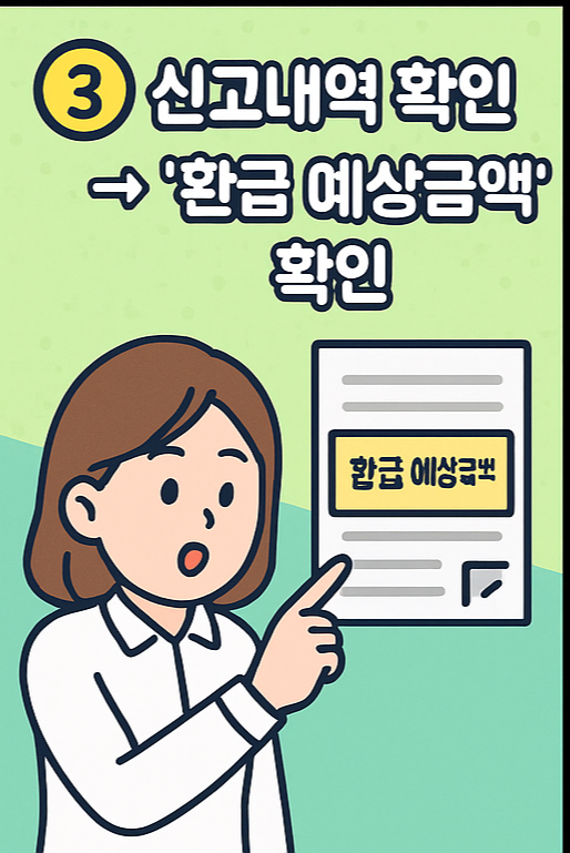 - 신고내역 확인 → ‘환급 예상금액’ 확인
